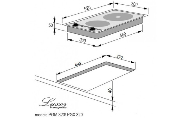 Плита газова дві конфорки неіржавка сталь із чавунною решіткою для вбудовування Luxor PGX 320 SS Turbo Steel