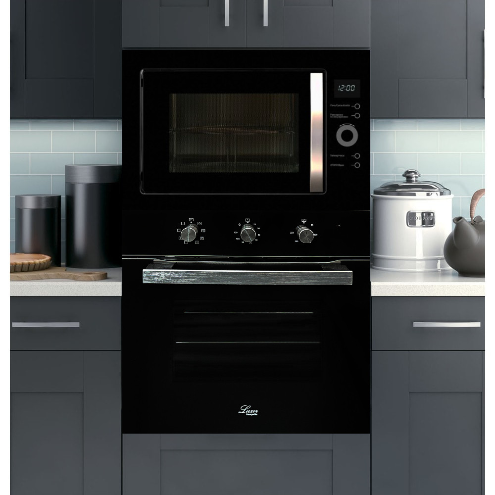 Вбудований комплект техніки: Духова шафа + НВЧ мікрохвильова піч. Скляні фасади, стандартні розміри вбудовування. Гармонійний сучасний дизайн. Два функціональних прилади загальним корисним об'ємом 95 літрів.