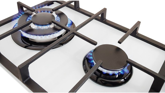 Вбудована варильна поверхня газова. Дві конфорки. Біла матова склокераміка. Суцільна чавунна решітка. Безпека — Газ Контроль. Автоматичне електрозапалювання. Turbo горілка — три кільця полум'я. Можливість під'єднання на балон.